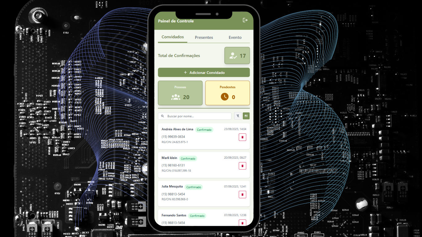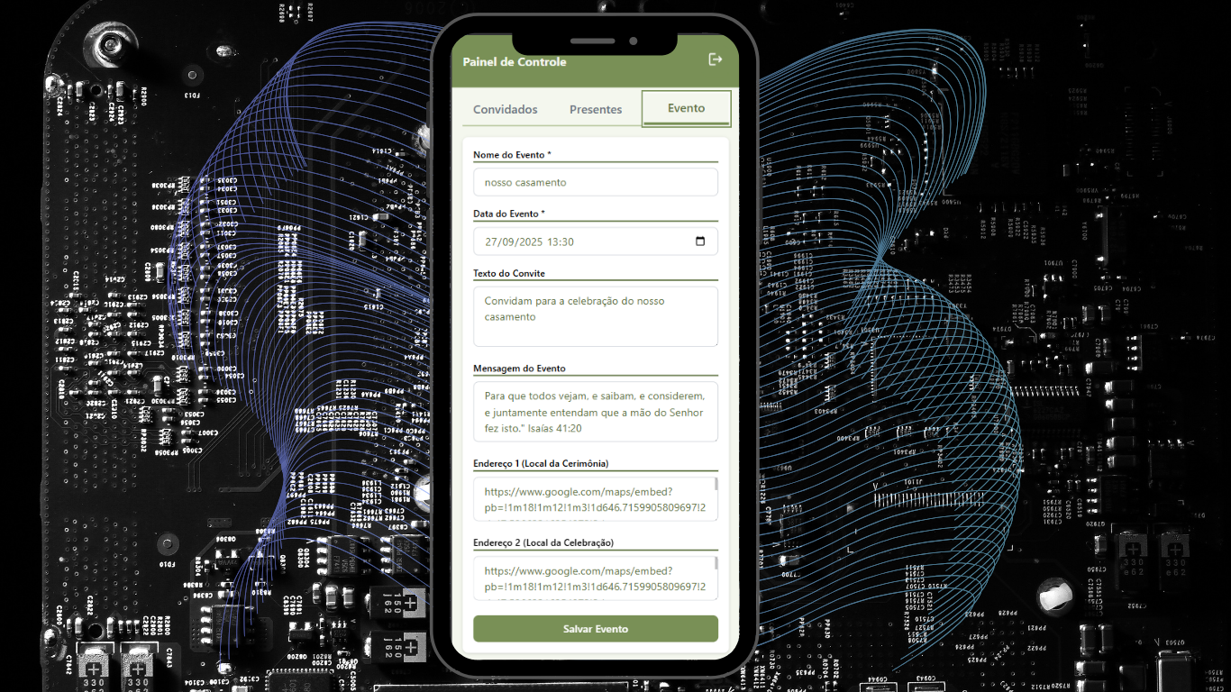 Aplicação web para convite digital de casamento com sistema de confirmação de presença, lista de convidados, lista de presentes, pagina de contribuição e painel administrativo com login Google + lista de emails permitidos.O sistena disponibiliza localização da cerimônia e da celebração por meio do Google Maps e links de pagamento por meio do mercado pago.